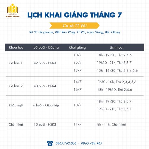 Lịch khai giảng cơ sở Vôi