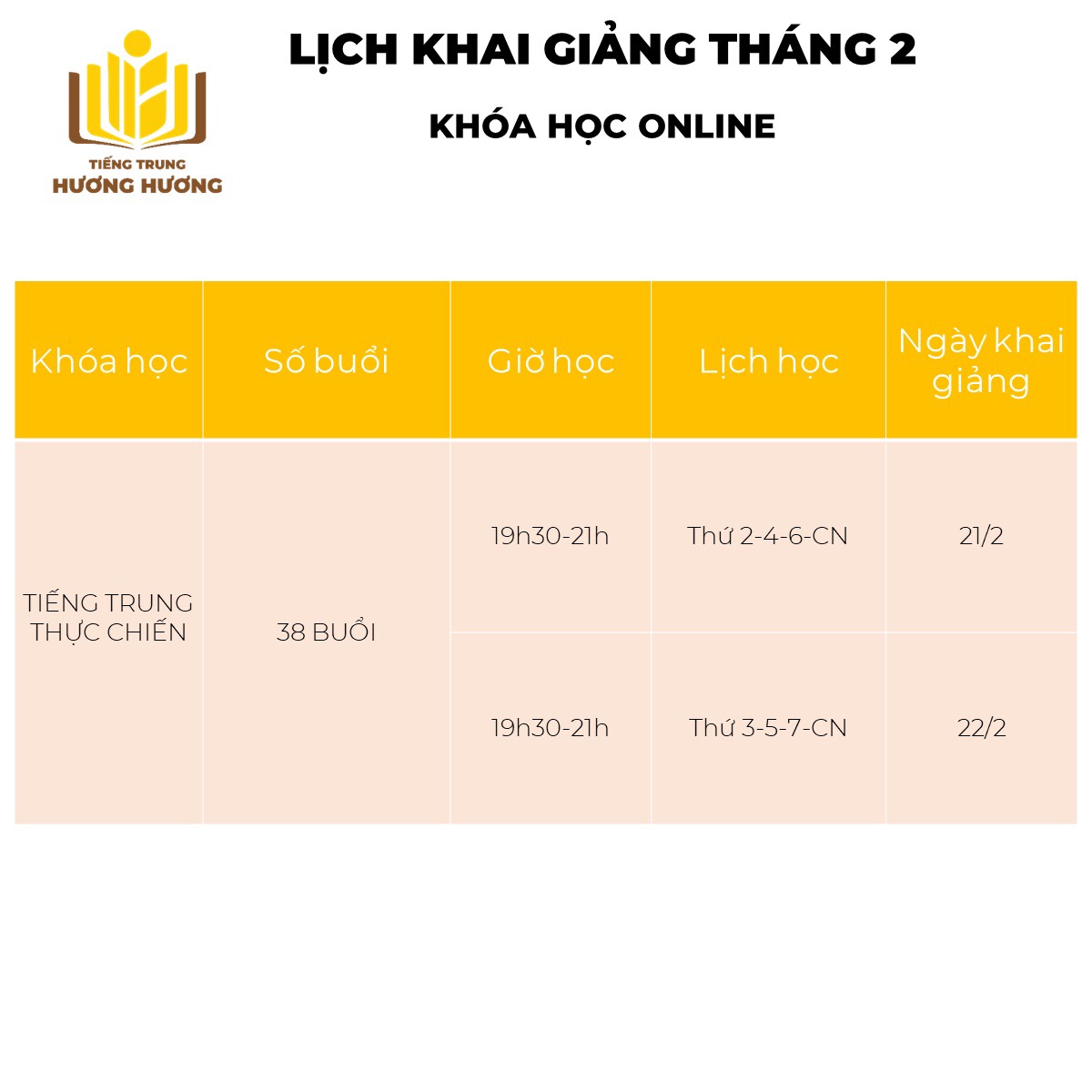 • Lịch khai giảng